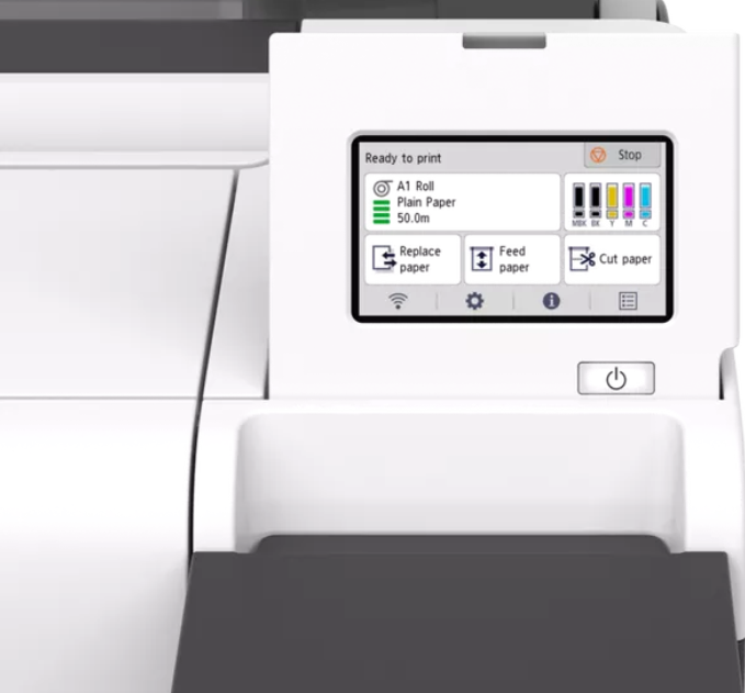 Plotter Canon imagePROGRAF TM-255 + HDD 500GB, 24"(610mm), format A1, 5 culori, rezolutie max 2400x1200dpi, memorie 2GB, limbaje de imprimare: HP-GL/2, HP RTL, PDF (Ver. 1.7), JPEG (Ver. JFIF 1.02), CALS G4 (submission via FTP only), display LCD 4.3", interfata: USB 2.0, Ethernet,WIFI consumabile: M: PFI-321(300 ml) / PFI-121 (130 ml),MBK/BK/C/Y: PFI-320 (300 ml) / PFI-120 (130 ml) print head PF-06, maintenance cartridge MC-31, Cutter Blade: CT-08 Stand inclus stand SD-24, roll holder RH2-28. Se livreaza cu cartuse starter.